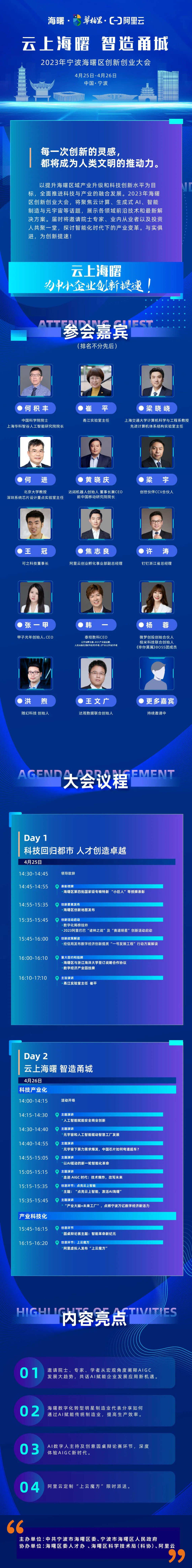 而即將到來的2023海曙區(qū)創(chuàng)新創(chuàng)業(yè)大會(huì),將持續(xù)聚焦云計(jì)算、生成式AI、智能制造、與工業(yè)元宇宙等新興業(yè)態(tài),展示各領(lǐng)域前沿技術(shù)和新解決方案。屆時(shí)將邀請業(yè)內(nèi)從業(yè)者、院士專家及投 資人共聚一堂,探討產(chǎn)業(yè)變革與創(chuàng)新創(chuàng)業(yè)之路,屆時(shí)期待您的到來!