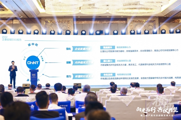 大會(huì)上,《正泰安能ESG報(bào)告》正式發(fā)布,這也是中國(guó)戶用光伏行業(yè)的首份ESG報(bào)告。正泰安能董事長(zhǎng)陸川從環(huán)境、社會(huì)和公司治理維度進(jìn)行了解讀,梳理正泰安能如何通過(guò)運(yùn)營(yíng)、品牌、渠道三大核心能力,在千村萬(wàn)戶踐行“雙碳目標(biāo)”。