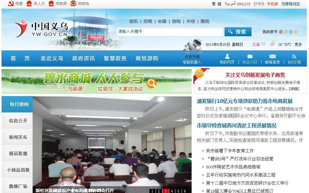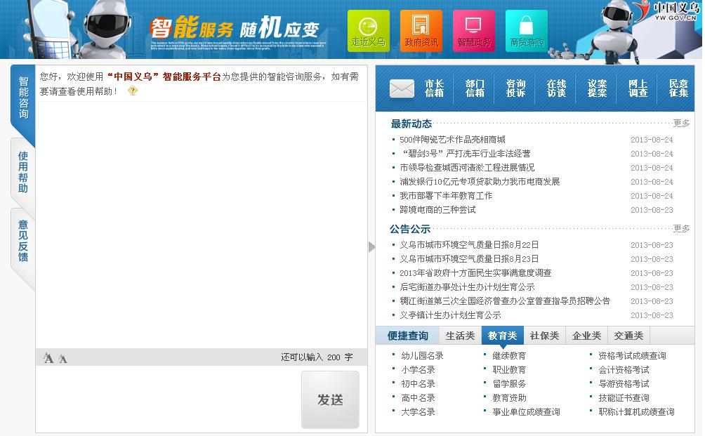 升級改版后的門戶網(wǎng)站設(shè)置了走近義烏、政府資訊、智慧政務、商貿(mào)游購、我的網(wǎng)頁等5個頻道,同時在原有3個外文網(wǎng)站、無障礙瀏覽網(wǎng)站基礎(chǔ)上強化了新技術(shù)應用及服務創(chuàng)新。由于此前數(shù)據(jù)之間沒有建立有效的關(guān)聯(lián)性,網(wǎng)站服務不夠智能化,導致用戶查詢不便。為破解難題,市電子政務辦公室引進前沿技術(shù),開發(fā)智能機器人,在省內(nèi)政府門戶網(wǎng)中首推智能機器人服務平臺。利用先進的人工智能技術(shù),網(wǎng)站建立了擁有32萬余條信息、21萬個分詞詞庫、8萬余條政務領(lǐng)域?qū)I(yè)詞庫的數(shù)據(jù)庫。