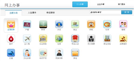 (1)服務事項查找簡潔直觀:辦事人可根據(jù)實際情況,從個人辦事、企業(yè)辦事、部門服務三個類別中,快速準確地定位到自己所需要申辦的服務事項,整個過程鼠標點擊不超過三次。還可以在搜索欄內(nèi)鍵入關鍵詞進行事項搜索。