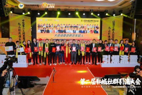 大會最后環(huán)節(jié),是大會聯(lián)合發(fā)起人簽約儀式,感謝本次大會43位組委會聯(lián)合發(fā)起人的信任與支持,感謝第 一本書刊的1200為老師的大力支持,在12月19日這一天與《九山引流俱樂部》共同見證這一歷史時刻,攜手做好私域,做好社群,讓流量破局,讓業(yè)績倍增,共同打造高質(zhì)量的社交圈子,2024年我們一起攜手起航,共創(chuàng)輝煌。最后,王九山現(xiàn)場公布了兩個事情:1、2024.9.3的千人大會與1月1日開啟贊助合作通道,將會在2024年的9月3日的千人盛典搭建一個3000人鏈接的資源平臺,現(xiàn)場大家可以結(jié)交更多優(yōu)質(zhì)朋友;2、明年九山引流俱樂部社群聯(lián)合發(fā)起人1993元開始回復(fù)原價2萬/年。