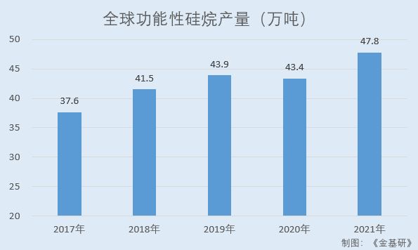 近年來,隨著下游行業(yè)的產(chǎn)業(yè)升級,終端客戶對產(chǎn)品品質(zhì)要求的不斷提高,功能性硅烷行業(yè)的整體需求呈穩(wěn)定上升趨勢,全球功能性硅烷行業(yè)產(chǎn)量持續(xù)增長。