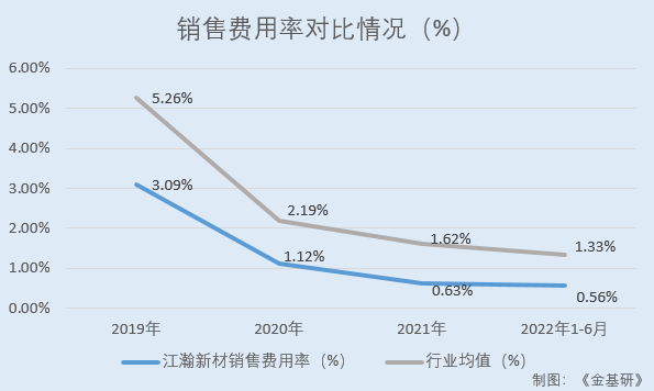 由此,江瀚新材的市場推廣、業(yè)務(wù)宣傳等費(fèi)用相對較少。結(jié)合江瀚新材對銷售部門的精細(xì)化管理,其銷售費(fèi)用率逐年下降,且低于行業(yè)均值。