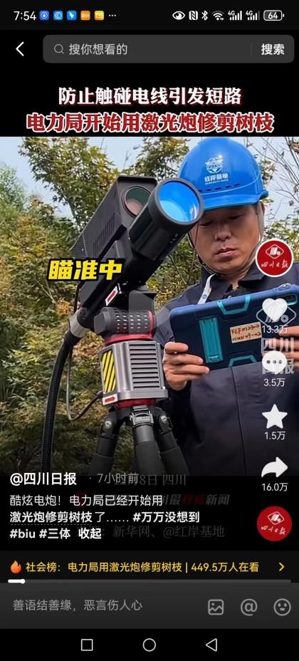 四川紅岸基地:全稱四川紅岸基地智能科技有限公司,由浙大校友陳國鑫領(lǐng)銜的團(tuán)隊(duì),將需要耗資數(shù)十億美元的激光炮平民化,其最新一代激光清障儀,用在電力運(yùn)維領(lǐng)域,遠(yuǎn)程切割輸電線路通道下方樹枝,幾十秒即可切斷20cm樹干,帶電作業(yè)零風(fēng)險,被稱為“電力手術(shù)刀”,產(chǎn)品一經(jīng)推出,在國家電網(wǎng)、南方電網(wǎng)、中廣核等單位已經(jīng)大量使用,創(chuàng)造的極大的經(jīng)濟(jì)效益和社會效益,得到包括新華社、人民日報、央視網(wǎng)、中國青年報、四川電視臺、華西都市報等在內(nèi)的主流媒體的報道點(diǎn)贊。其最新研發(fā)的遠(yuǎn)近一體激光破拆工具組,在消防領(lǐng)域也大展神威,為消防戰(zhàn)士提供了有力的工具;