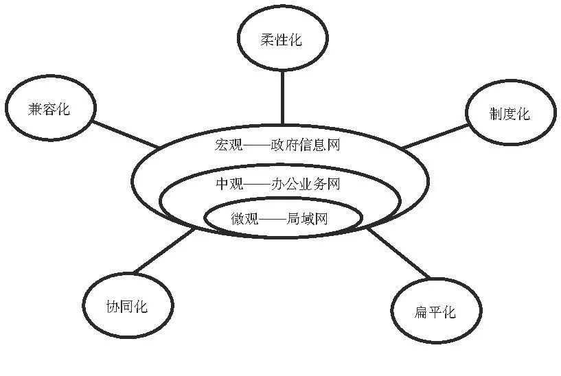 第一個(gè)層次是微觀層次, 是指設(shè)立政府局域網(wǎng), 就是在把各單位非涉密類文件進(jìn)行電子化處理, 集中發(fā)布在內(nèi)網(wǎng)上;第二個(gè)層次是中觀層次, 是指設(shè)置辦公業(yè)務(wù)網(wǎng), 主要涉及的是平行單位相關(guān)業(yè)務(wù)的數(shù)據(jù), 對(duì)這些數(shù)據(jù)進(jìn)行互通連接, 統(tǒng)一進(jìn)行管理;第三個(gè)層次是宏觀層次, 是指設(shè)立政府信息網(wǎng), 這主要是對(duì)政府部門實(shí)行一體化的管理, 增強(qiáng)數(shù)據(jù)的互聯(lián)互通, 切實(shí)形成構(gòu)建全國(guó)統(tǒng)一的數(shù)據(jù)開放模式的整體合力。