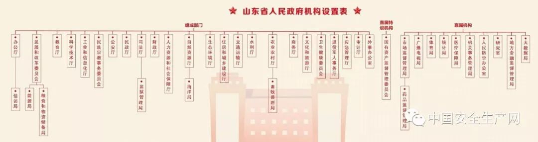 組成部門(23個(gè)):發(fā)展和改革委員會(huì)、教育廳、科學(xué)技術(shù)廳、工業(yè)和信息化廳、民族宗教事務(wù)委員會(huì)、公安廳、民政廳、司法廳、財(cái)政廳、人力資源和社會(huì)保障廳、自然資源廳、生態(tài)環(huán)境廳、住房和城鄉(xiāng)建設(shè)廳、交通運(yùn)輸廳、水利廳、農(nóng)業(yè)農(nóng)村廳、商務(wù)廳、文化和旅游廳、衛(wèi)生健康委員會(huì)、退役軍人事務(wù)廳、應(yīng)急管理廳、審計(jì)廳、外事辦公室