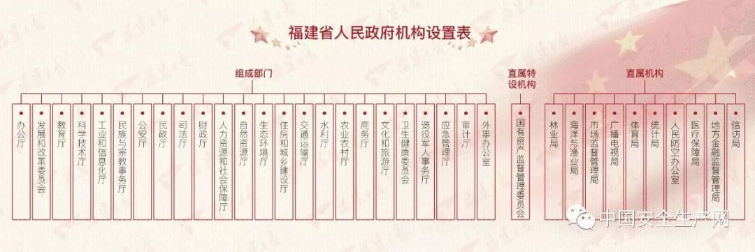 《福建省省級(jí)機(jī)構(gòu)改革實(shí)施方案》明確,福建省省級(jí)共設(shè)置黨政機(jī)構(gòu)60個(gè)。黨委機(jī)構(gòu)19個(gè),其中,紀(jì)檢監(jiān)察機(jī)關(guān)1個(gè),工作機(jī)關(guān)15個(gè),工作機(jī)關(guān)管理的機(jī)關(guān)3個(gè)。政府機(jī)構(gòu)41個(gè),其中,省政府辦公廳和組成部門24個(gè),直屬特設(shè)機(jī)構(gòu)1個(gè),直屬機(jī)構(gòu)10個(gè),部門管理機(jī)構(gòu)6個(gè)。