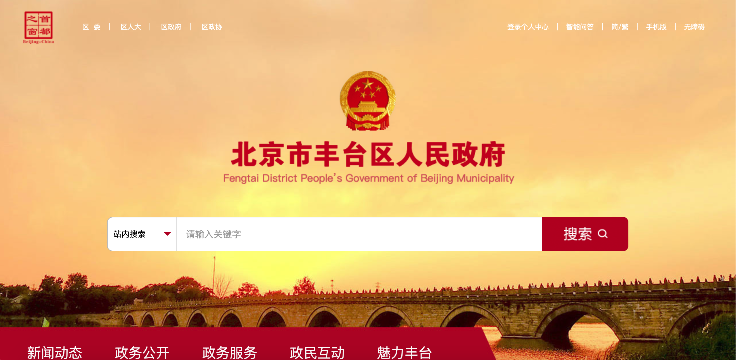 有四個(gè)區(qū)政府網(wǎng)站使用了古建筑形象,有樓、塔、橋,其中,東城區(qū)政府網(wǎng)站在右側(cè)使用了故宮角樓一角的形象;豐臺(tái)區(qū)政府網(wǎng)站首屏下方是一座橋,盧溝橋;門頭溝區(qū)政府網(wǎng)站首屏是云海,右側(cè)顯露出永定樓的一部分;通州區(qū)政府網(wǎng)站首屏是大運(yùn)河照片,左側(cè)是燃燈塔的形象。