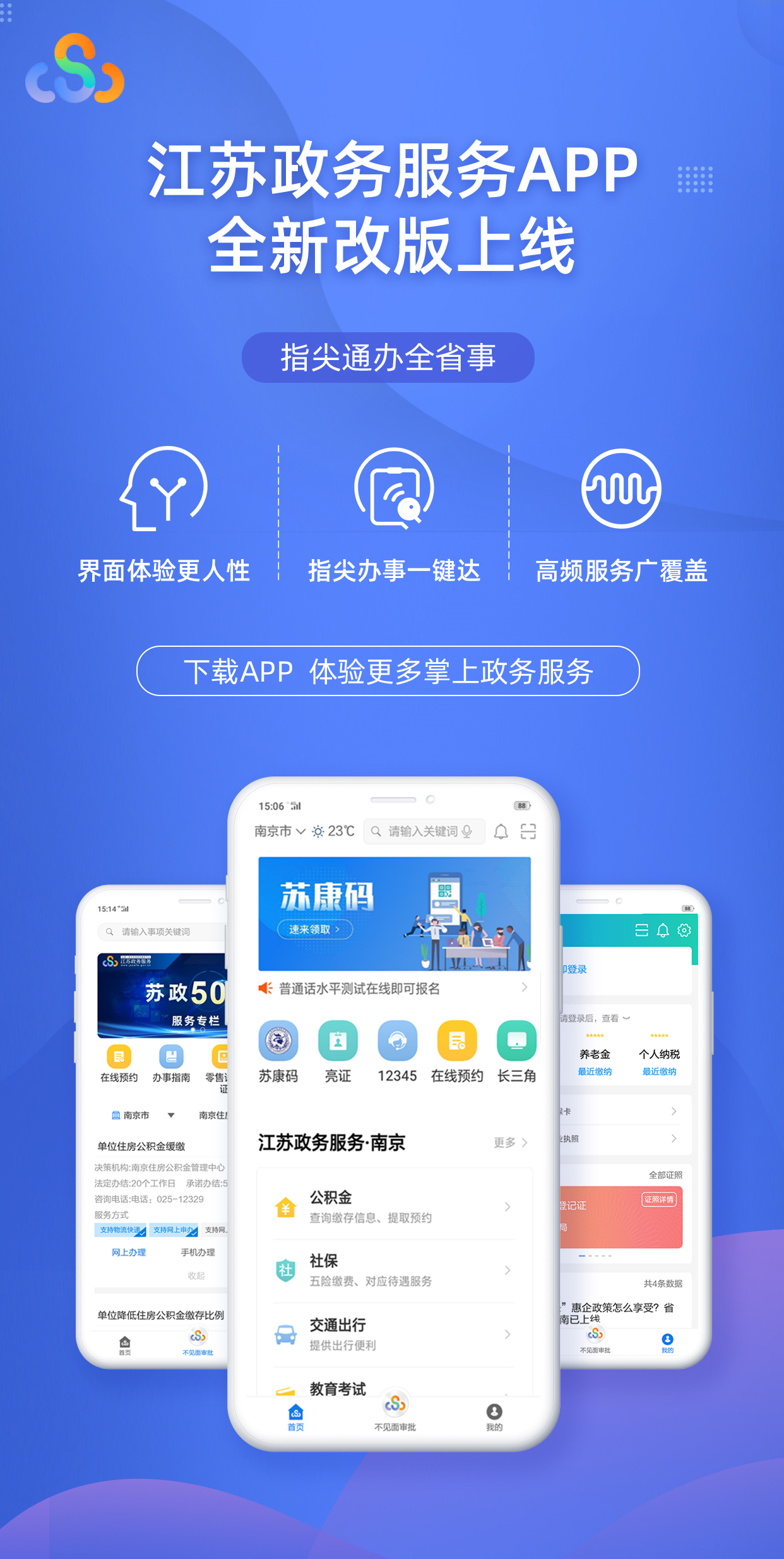 新版江蘇政務(wù)服務(wù)APP,在服務(wù)層級、界面內(nèi)容上做減法,使用戶更快觸達所在地政務(wù)服務(wù);優(yōu)化搜索功能,支持模糊搜索及精準定位,方便用戶快速查找;滾動展示服務(wù)資訊,增加個性化提醒,化被動服務(wù)為主動服務(wù);對現(xiàn)有2000余項應(yīng)用,按照使用頻次、業(yè)務(wù)覆蓋范圍等重新“排排坐”,突出展示重點、高頻應(yīng)用。