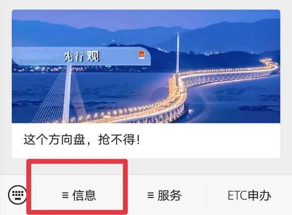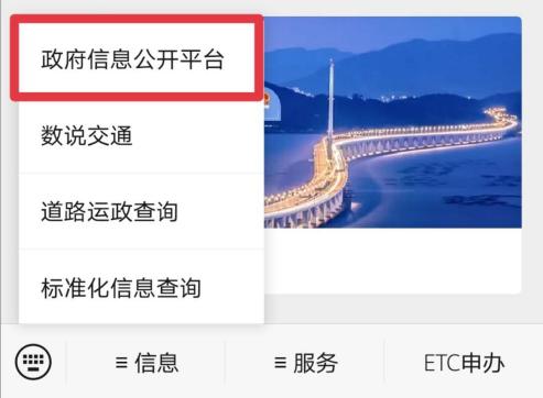點擊進入【交通運輸部】微信公眾號,在菜單欄點擊【信息】