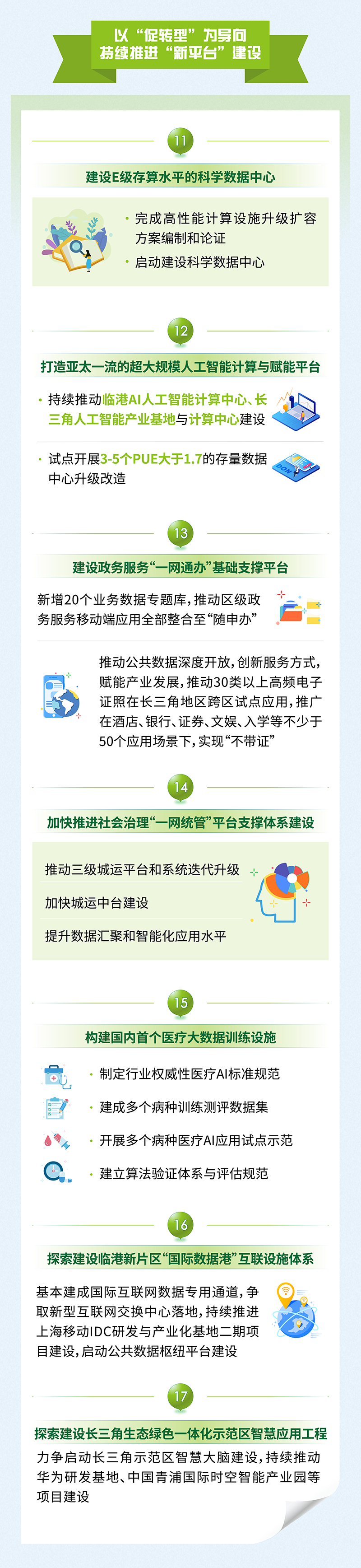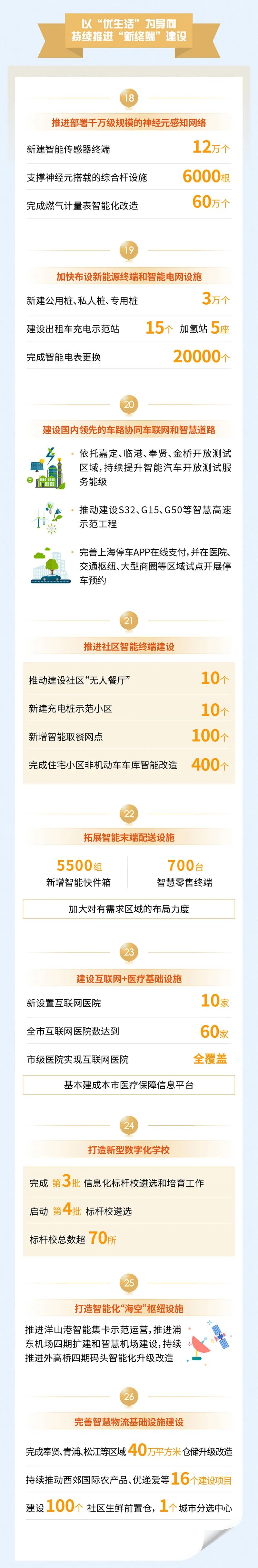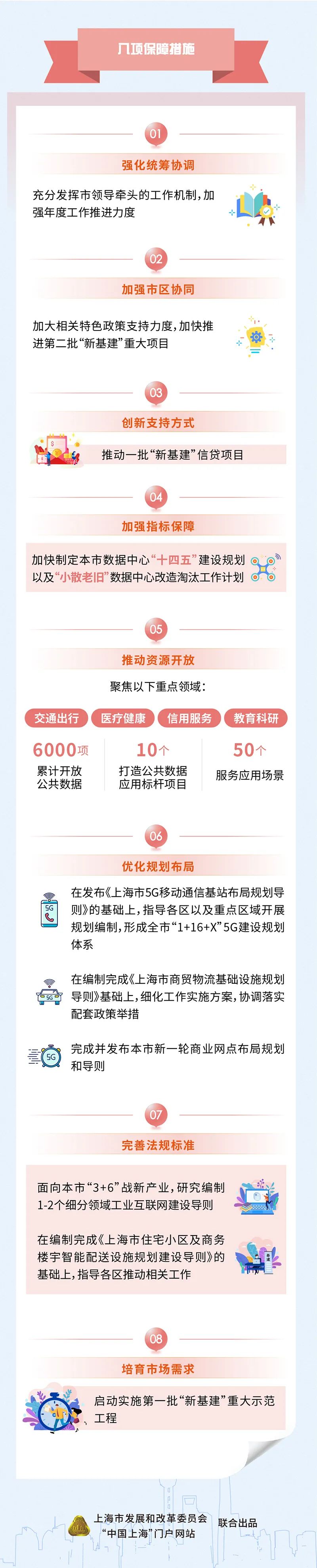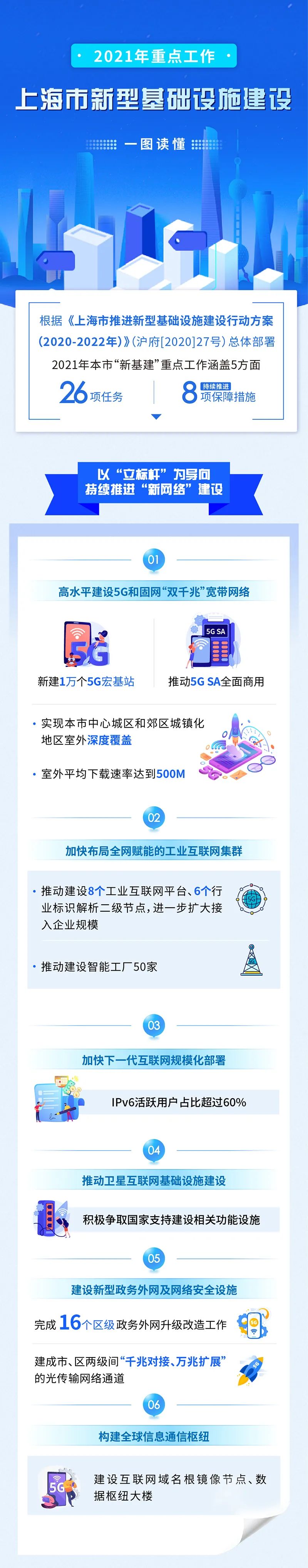 根據(jù)《上海市推進(jìn)新型基礎(chǔ)設(shè)施建設(shè)行動(dòng)方案(2020-2022年)》總體部署,2021年本市“新基建”重點(diǎn)工作涵蓋5方面26項(xiàng)任務(wù),并持續(xù)推進(jìn)8項(xiàng)保障措施,包括新建1萬個(gè)5G宏基站,新建公用樁、私人樁、專用樁3萬個(gè),建設(shè)出租車充電示范站15個(gè)、加氫站5座,完成智能電表更換20000個(gè)等。詳見↓