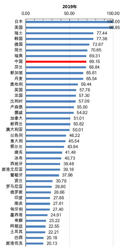 2019年我國知識產(chǎn)權發(fā)展狀況國際比較得分