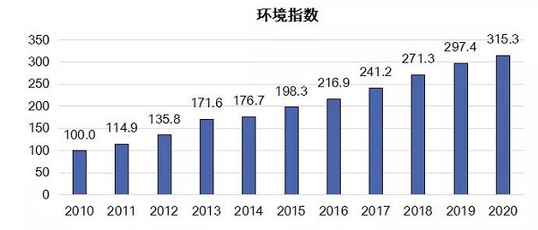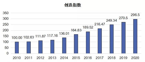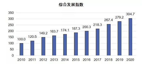 2010~2020年全國知識產(chǎn)權發(fā)展指數(shù)