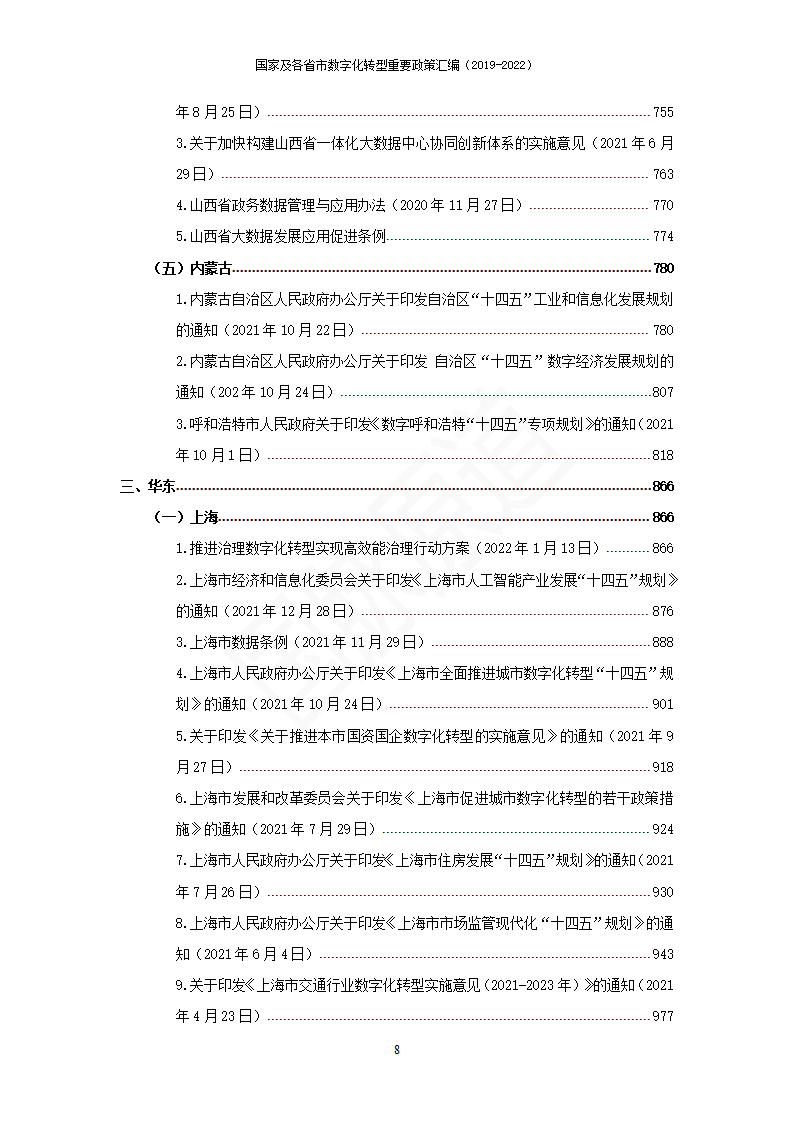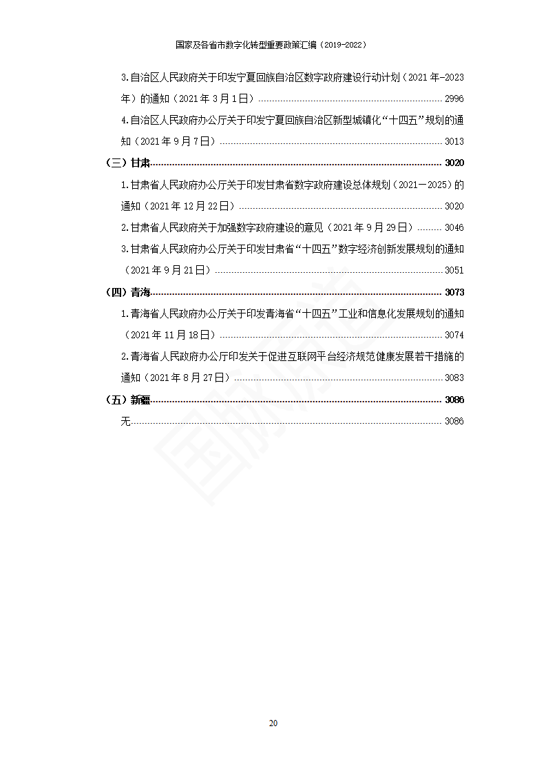 湖南國脈原道數(shù)據(jù)科技有限公司對國家層面、省級層面及部分市級層面2019年-2022年出臺的數(shù)字化轉(zhuǎn)型相關的政策文件進行了匯編,共計200余個文件,3000余頁,近200萬字。該匯編將持續(xù)性更新,是各地各部門數(shù)字化工作開展的重要參考。