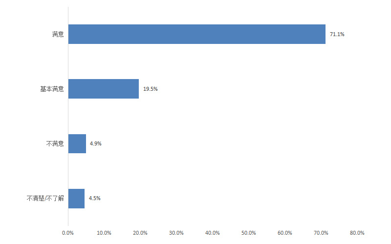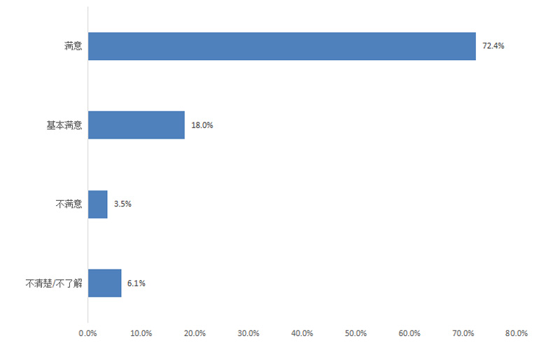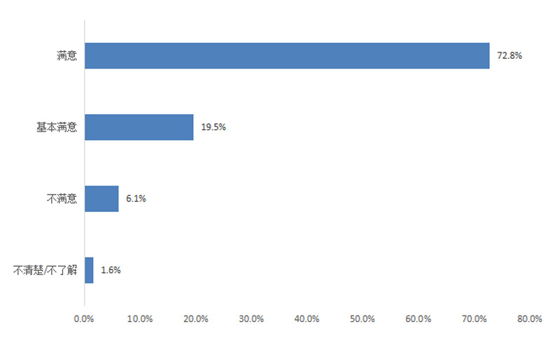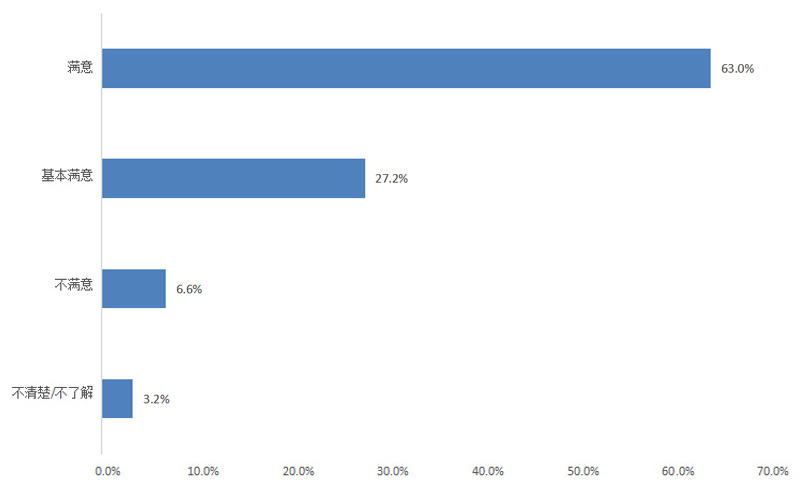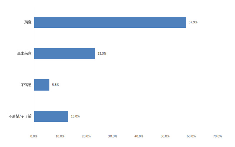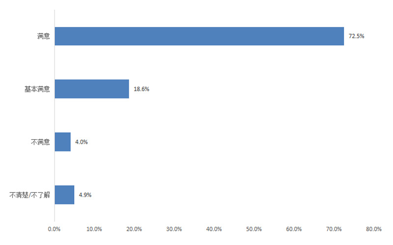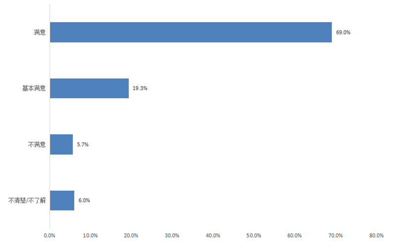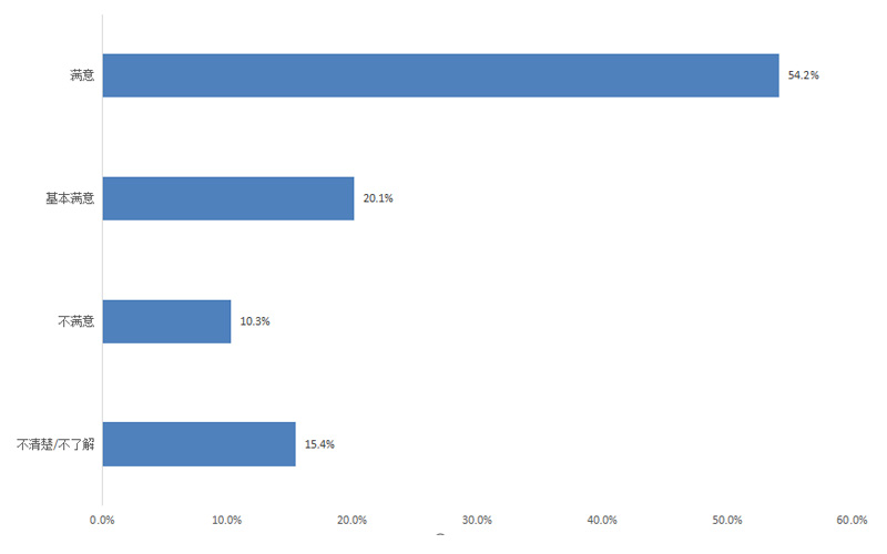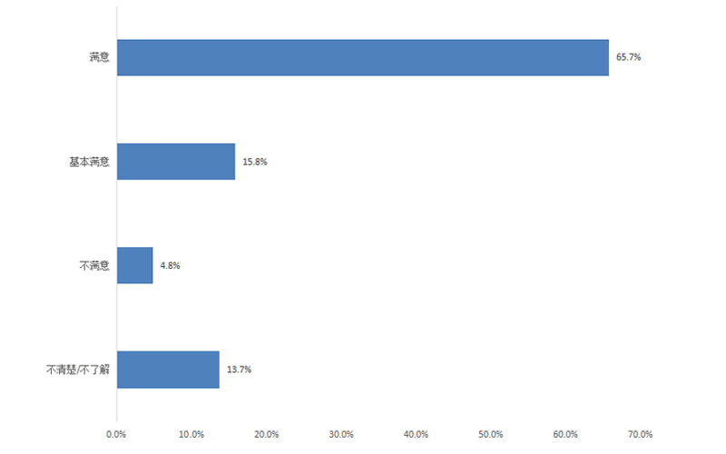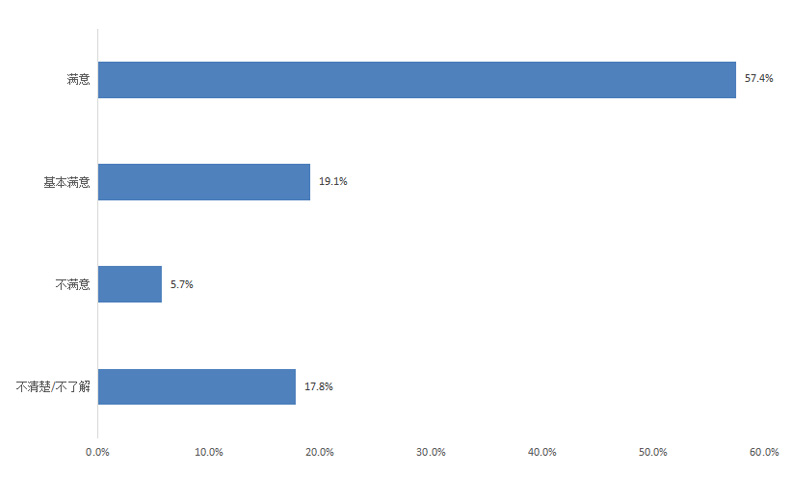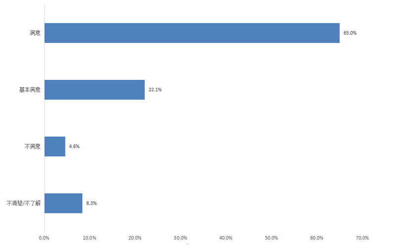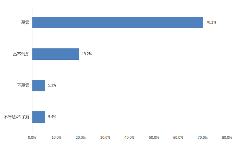 調查結果顯示,群眾對政府機關執(zhí)行“放管服”改革及“一站式辦理審批”的滿意度為90.0%,其中評價“滿意”的占65.1%,“基本滿意”的占24.9%,“不滿意”的占4.3%,“不清楚/不了解”的占5.7%。