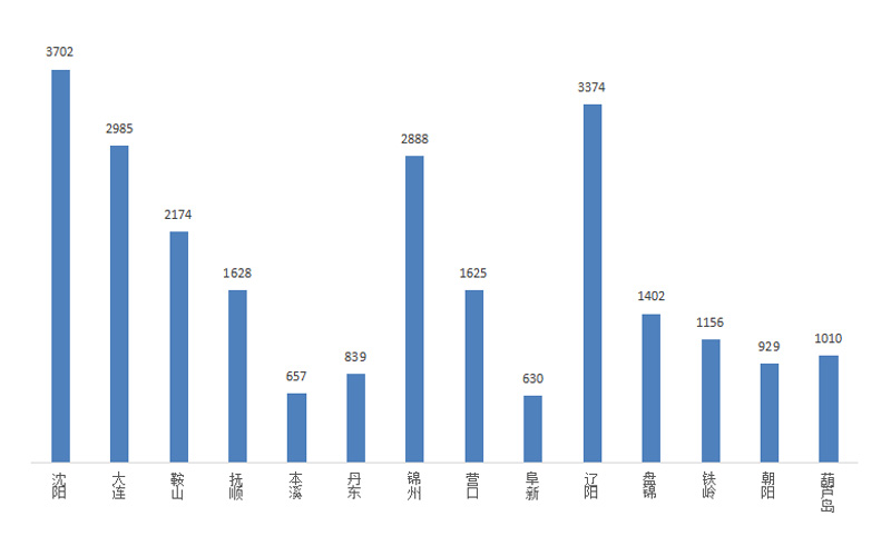 企業(yè)所屬地區(qū)情況:企業(yè)所屬地區(qū)分布中調查數(shù)量最多的是沈陽,為3702家,占比14.8%;最少的是阜新,為630家,占比2.5%。