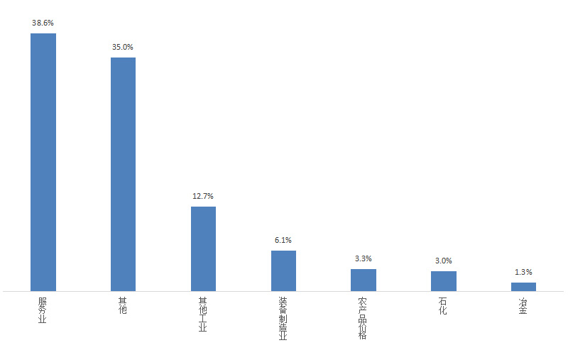 企業(yè)所屬行業(yè)分布情況:企業(yè)所屬行業(yè)分布中調查數(shù)量最多的是服務業(yè),為9645家,占比38.6%;最少的是冶金,為324家,占比1.3%。