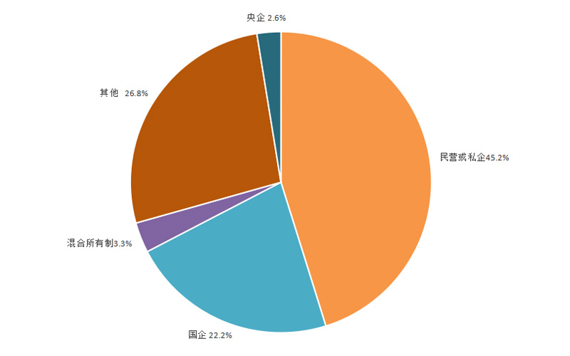 企業(yè)性質情況:央企640家,占2.6%;國企5549家,占22.2%;混合所有制企業(yè)813家,占3.3%;民營或私企11295家,占45.2%;其他6702家,占26.8%。
