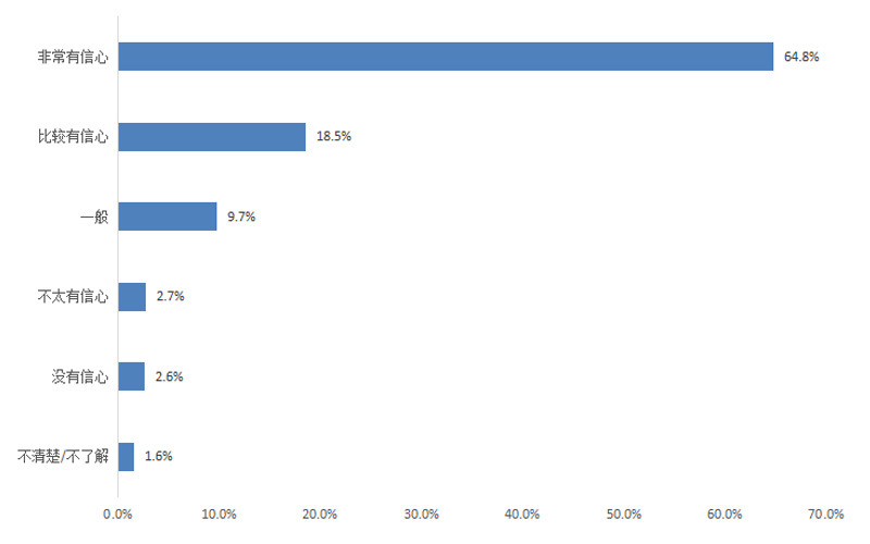 調查結果顯示,群眾對遼寧全面振興的信心為83.3%(“非常有信心”和“比較有信心”比重加權之和),其中評價“非常有信心”的占64.8%,“比較有信心”的占18.5%,“一般”的占9.7%,“不太有信心”的占2.7%,“沒有信心”的占2.6%,“不清楚/不了解”的占1.6%。
