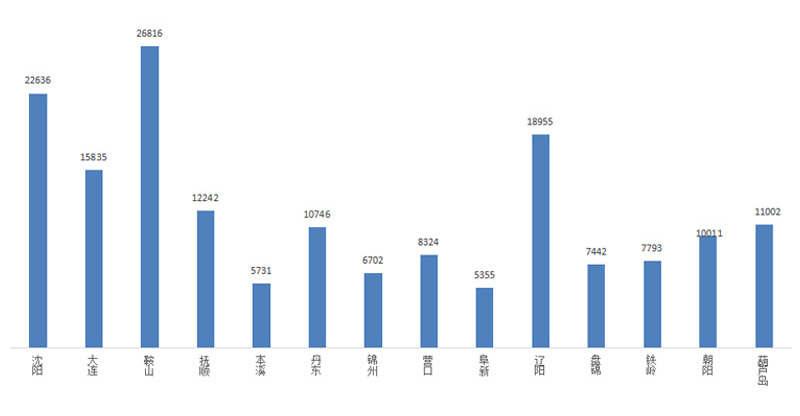 居住地區(qū)分布情況:地區(qū)分布中,調查數(shù)量最多的是鞍山,為26816人,占比15.8%;最少的是阜新,為5355人,占比3.2%。