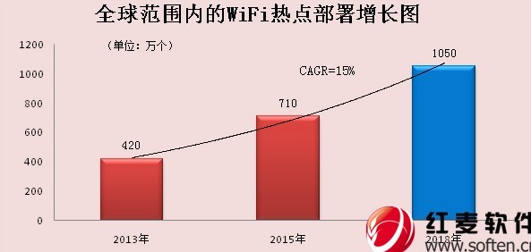 由于輻射面廣,運(yùn)營商們開始尋求從移動(dòng)網(wǎng)絡(luò)分流流量,40%的運(yùn)營商表示,WiFi不應(yīng)當(dāng)只是分流和疏通擁擠網(wǎng)絡(luò)的手段,而是成為一種能夠向用戶提供的增值服務(wù)。來自美國市場研究公司ABI Research的研究報(bào)告顯示,為了分流無線流量并拓展服務(wù)范圍,目前全球已經(jīng)有89%的寬帶服務(wù)運(yùn)營商部署了WiFi網(wǎng)絡(luò)。預(yù)計(jì)全球WiFi設(shè)備累到2015年將增加至710萬個(gè),2017年末的WiFi設(shè)備累計(jì)出貨量將接近200億臺(tái),并且將在2013年-2018年之間繼續(xù)保持15%的年復(fù)合增長率,屆時(shí)將超過1.05億個(gè)。