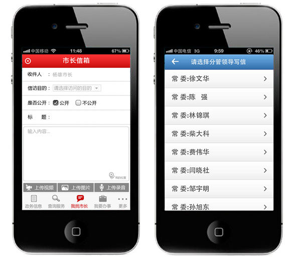辦件提交功能,支持對(duì)不同性質(zhì)辦件的提交,和多個(gè)政府部門(mén)的辦件提交,并支持手機(jī)終端的拍照、語(yǔ)音和文字的提交方式,對(duì)突發(fā)事件可以進(jìn)行及時(shí)的投訴報(bào)料,做到對(duì)現(xiàn)場(chǎng)最真實(shí)的記錄。同時(shí)作為政民互動(dòng)交互工具可以充分利用碎片時(shí)間做到隨時(shí)隨身。移動(dòng)終端的提交方式是PC提交方式的必要補(bǔ)充。