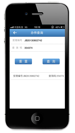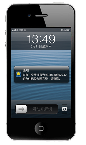 移動(dòng)終端系統(tǒng)可以綁定用戶手機(jī)的設(shè)備ID,并在手機(jī)上自動(dòng)記錄提交的辦件編號(hào),供將來(lái)進(jìn)行辦件查詢。這將比電腦更加方便。