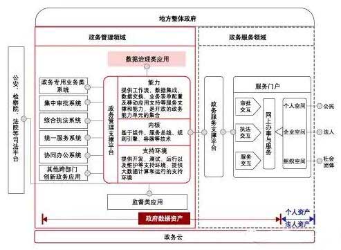有別于電子商務(wù)和企業(yè)信息化,政務(wù)數(shù)據(jù)具有鮮明的責(zé)任域特征。在現(xiàn)階段條件下,地方政府的業(yè)務(wù)仍舊由地方政府政務(wù)管理和政務(wù)服務(wù)兩類事務(wù)組成,政務(wù)管理以政府傳統(tǒng)內(nèi)部事務(wù)管理為主,政務(wù)服務(wù)則是以面向公眾提供公共服務(wù)為主,政務(wù)管理與政務(wù)服務(wù)相輔相成。