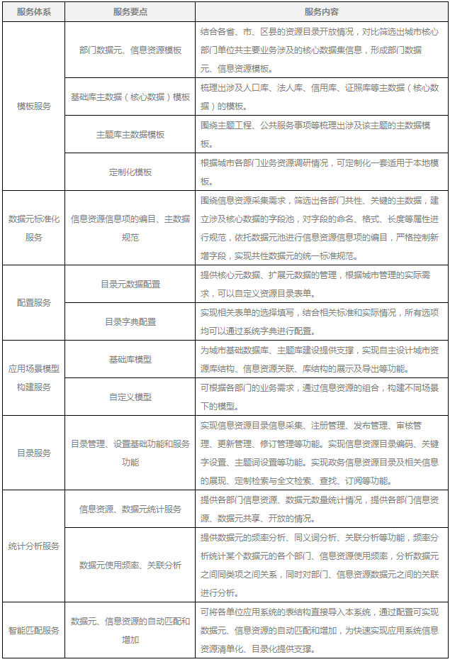 本系統(tǒng)從信息資源業(yè)務出發(fā),圍繞信息資源業(yè)務及相應的軟硬件,構建城市信息資產清單,定位業(yè)務—信息資源—應用系統(tǒng)—服務器—機房(云)。同時結合信息資源提供梳理服務、標準規(guī)范制定、績效考核指標設計等系列咨詢服務。