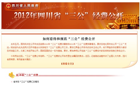 2012年,四川省人民政府網(wǎng)站政務專題欄目圍繞“三公經(jīng)費”,及時推出“2012... -