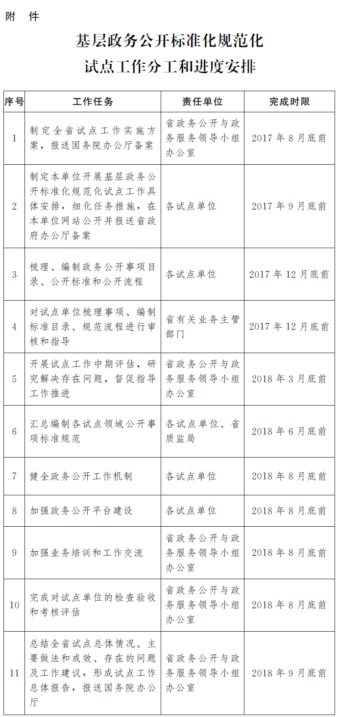 附件:基層政務公開標準化規(guī)范化試點工作分工和進度安排