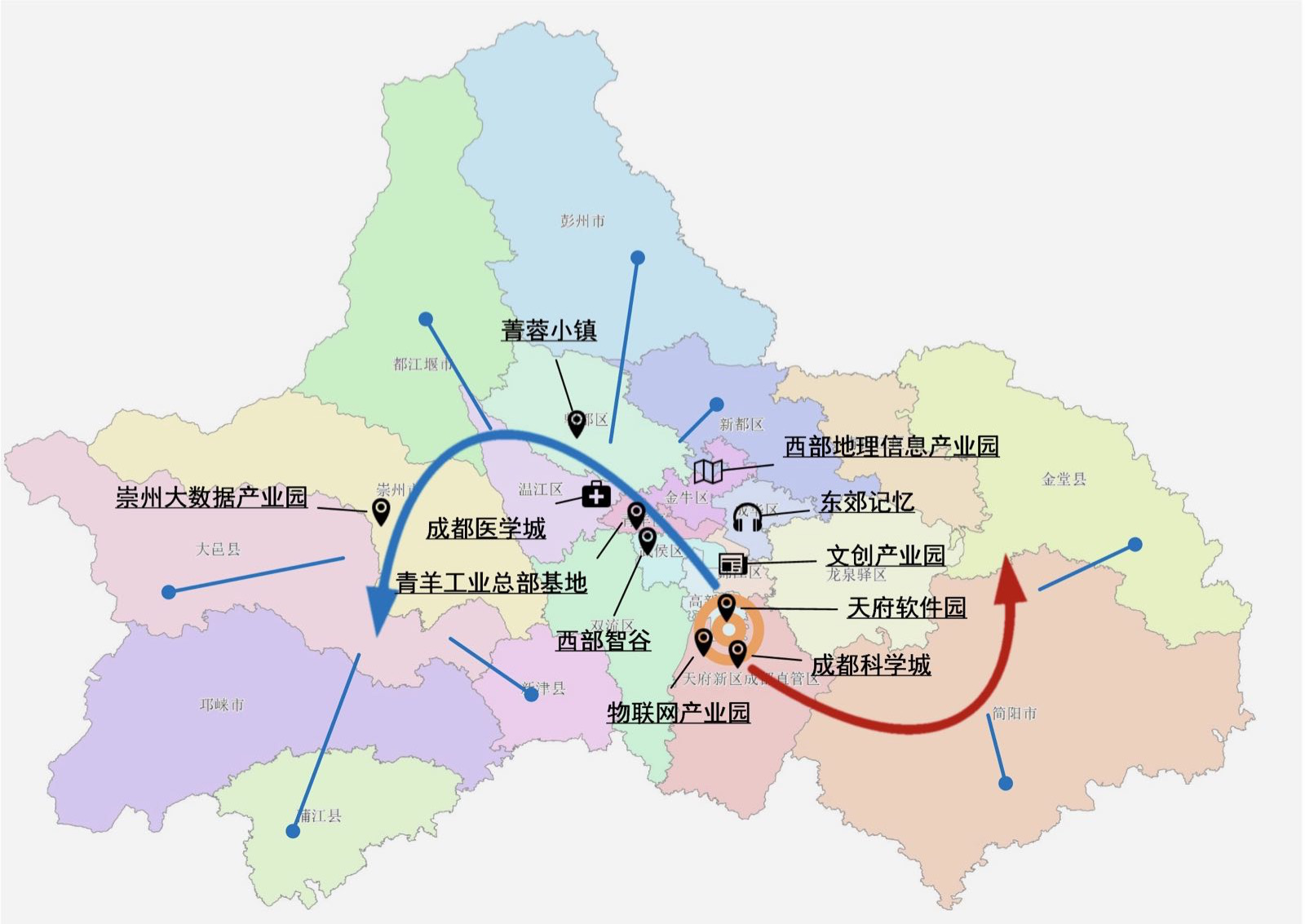 圖2 成都市大數(shù)據(jù)產(chǎn)業(yè)布局示意圖