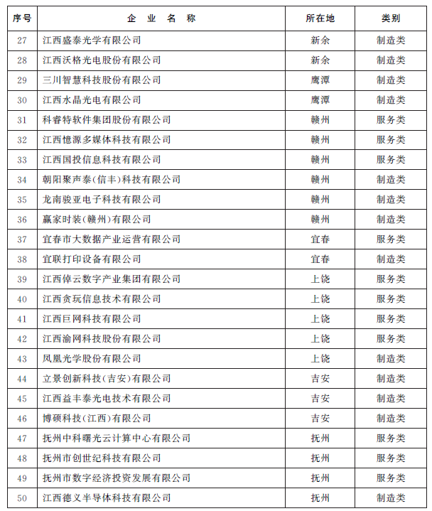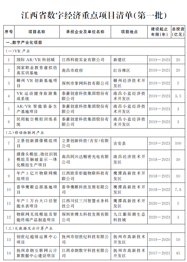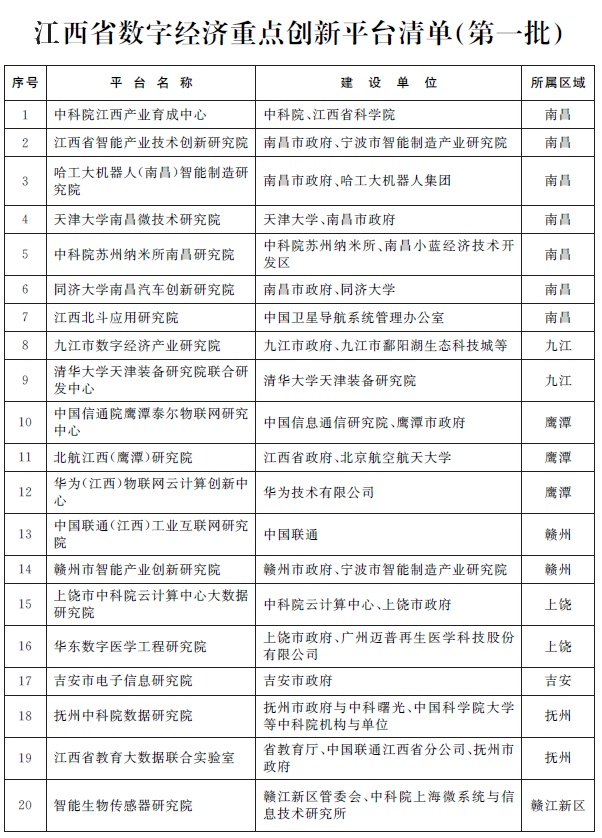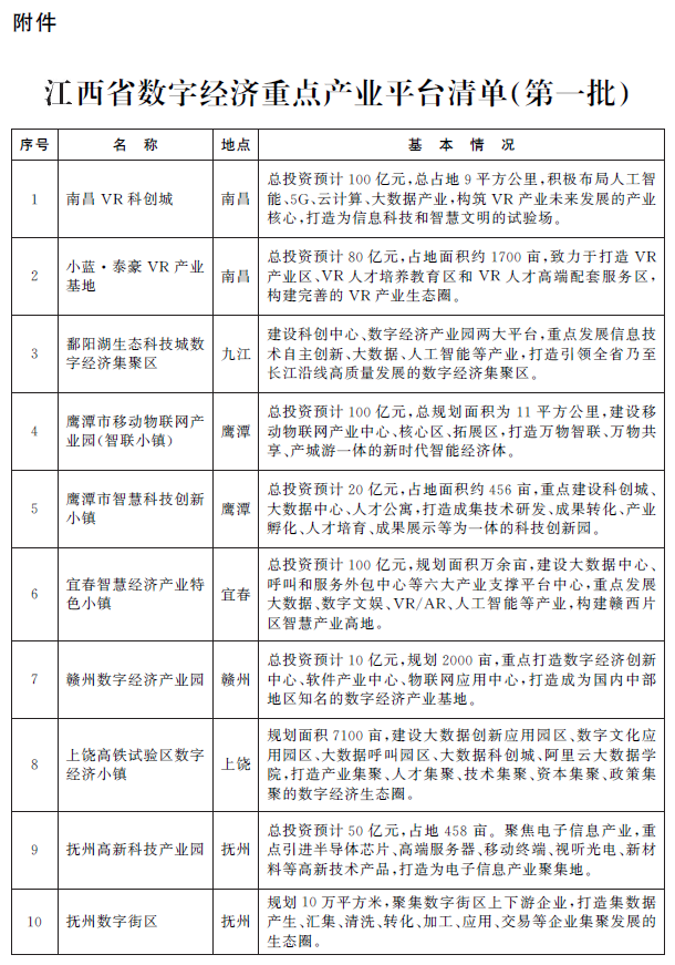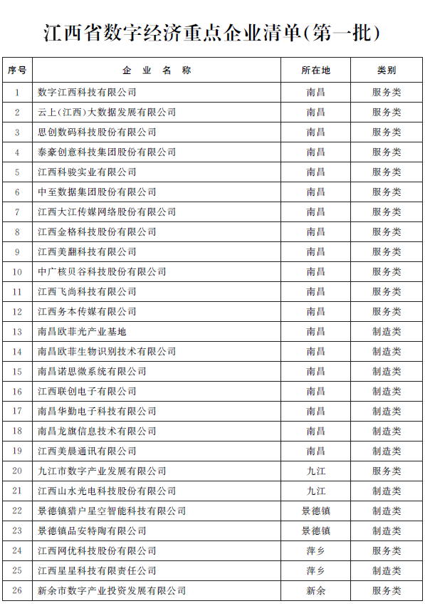 附件:江西省數(shù)字經(jīng)濟重點產(chǎn)業(yè)平臺、重點項目、重點創(chuàng)新平臺、重點企業(yè)清單(第一批)