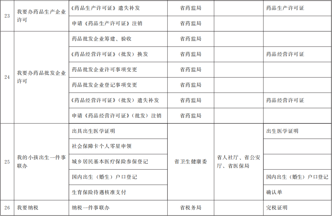 省級(jí)第一批“一件事一次辦”事項(xiàng)目錄(30項(xiàng))