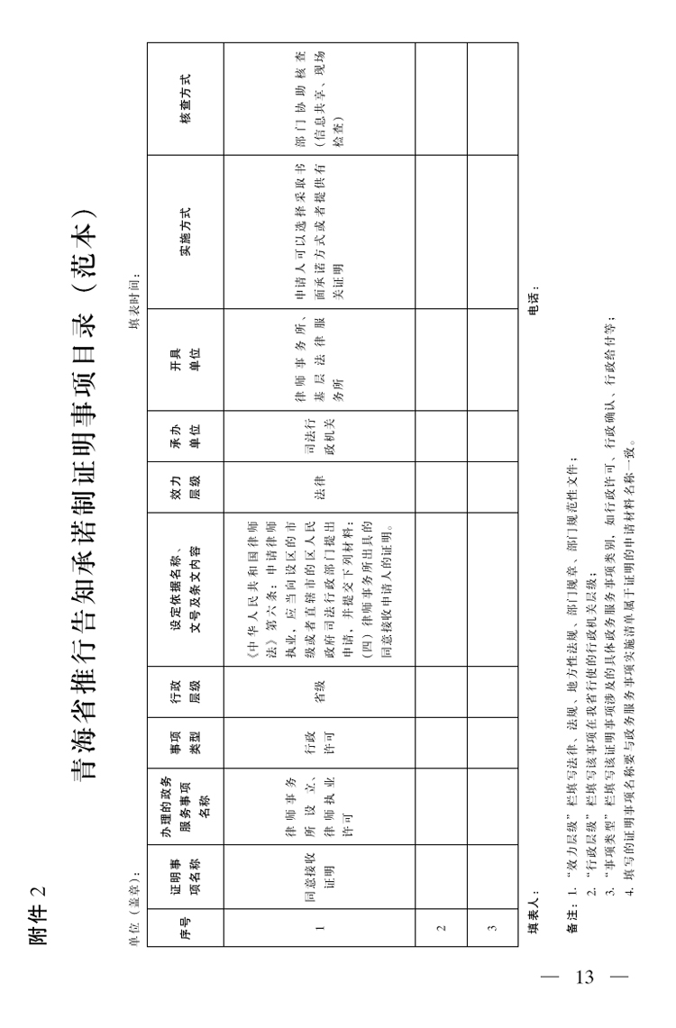 2.青海省推行告知承諾制證明事項(xiàng)目錄(范本)