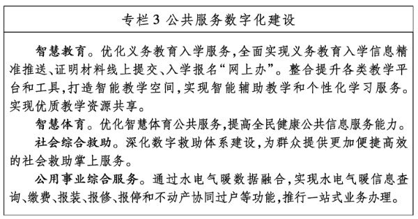 17.強(qiáng)化公共服務(wù)數(shù)字化供給。圍繞教育、醫(yī)療、就業(yè)、社保、醫(yī)保、文化、體育、養(yǎng)老、救助等重點(diǎn)領(lǐng)域,深入開(kāi)展大數(shù)據(jù)創(chuàng)新應(yīng)用,全面打造智慧應(yīng)用場(chǎng)景。優(yōu)化義務(wù)教育入學(xué)服務(wù),全面實(shí)現(xiàn)義務(wù)教育入學(xué)信息精準(zhǔn)推送、證明材料線(xiàn)上提交、入學(xué)報(bào)名“網(wǎng)上辦”。依托全省統(tǒng)一的“互聯(lián)網(wǎng)+醫(yī)療健康”便民服務(wù)平臺(tái),加快實(shí)現(xiàn)號(hào)源共享,推動(dòng)電子健康卡就醫(yī)服務(wù)應(yīng)用,推廣診間結(jié)算、先診療后付費(fèi)模式。加快人力資源社會(huì)保障數(shù)字化轉(zhuǎn)型,充分發(fā)揮社??ǎ娮由绫?ǎ┚€(xiàn)上線(xiàn)下身份認(rèn)證和金融支付功能優(yōu)勢(shì),拓展其在政務(wù)和民生服務(wù)領(lǐng)域的廣泛應(yīng)用,以社會(huì)保障卡為載體建立居民服務(wù)“一卡通”。深化醫(yī)保電子憑證應(yīng)用,推進(jìn)醫(yī)保電子憑證全流程和移動(dòng)支付應(yīng)用建設(shè),打造線(xiàn)上線(xiàn)下充分融合的醫(yī)保便民支付體系,配合推進(jìn)普通門(mén)診省內(nèi)及跨省聯(lián)網(wǎng)直接結(jié)算,推行門(mén)診慢特病跨省聯(lián)網(wǎng)直接結(jié)算。強(qiáng)化公共就業(yè)人才數(shù)字化服務(wù),提升就業(yè)管理和服務(wù)信息化水平。實(shí)施智慧文旅工程,打造數(shù)字“文化超市”。優(yōu)化智慧體育公共服務(wù),提高全民健康公共信息服務(wù)能力。深化數(shù)字救助體系建設(shè),為群眾提供更加便捷高效的社會(huì)救助掌上服務(wù)。推行“互聯(lián)網(wǎng)+退役軍人服務(wù)”,提升退役軍人服務(wù)數(shù)字化、精細(xì)化水平。2025年年底前,基本建成全生命周期數(shù)字化惠民服務(wù)體系。(責(zé)任單位:市教育局、市民政局、市人力資源社會(huì)保障局、市文化和旅游局、市衛(wèi)生健康委、市退役軍人局、市體育局、市醫(yī)保局、市大數(shù)據(jù)中心)