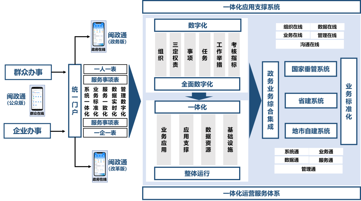 福建數(shù)字政府改革和建設(shè)實(shí)施框架如下: