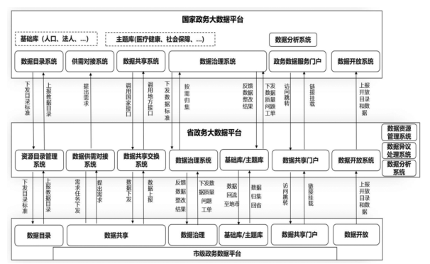 圖3 國家、省、市政務數(shù)據(jù)平臺關系圖