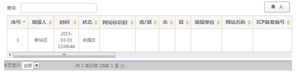 組織單位在收到上報文件后,使用賬號和密碼登錄報送系統(tǒng),在“政府網(wǎng)站和欄目(系統(tǒng))基本信息表”的數(shù)據(jù)管理頁面中,將上報文件導(dǎo)入系統(tǒng)。