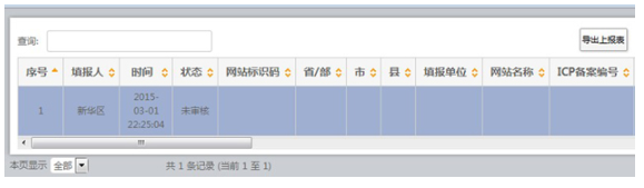 組織單位可使用系統(tǒng)“導(dǎo)出上報表”功能,導(dǎo)出政府網(wǎng)站和欄目(系統(tǒng))基本信息,并生成excel文件格式的上報表,打印簽字蓋章后呈報上級組織單位。