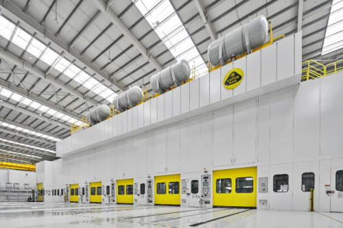 沖壓車間采用全球先進的五序全自動伺服沖壓設(shè)備,可實現(xiàn)更為復(fù)雜造型沖壓件的制造,零件成型更充分,從根本上保證了零件的尺寸精度和車身造型線條的一致性,滿足路特斯對于極致空氣動力學(xué)復(fù)雜設(shè)計的制造需求。全自動沖壓線的首臺壓機,擁有高達2500噸的沖壓壓力,達到目前行業(yè)最 大壓力水平,讓復(fù)雜造型也能充分塑型,讓每一個風(fēng)道,都極致精細。