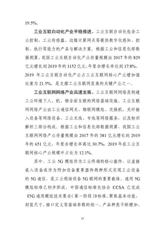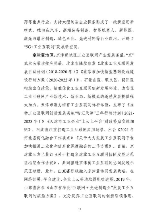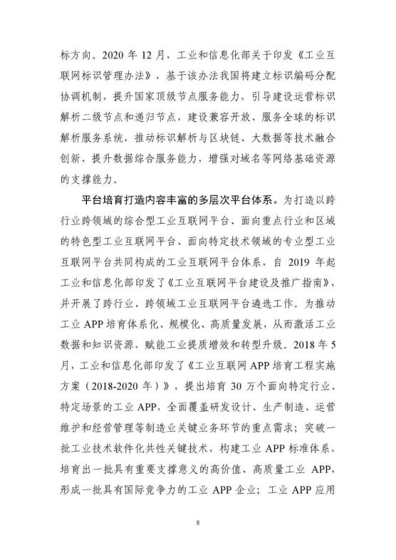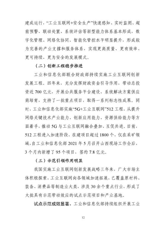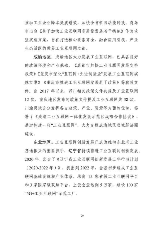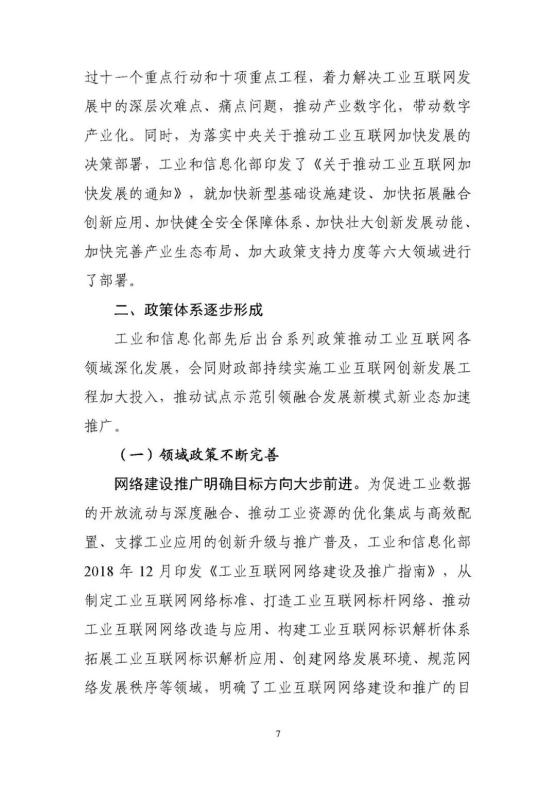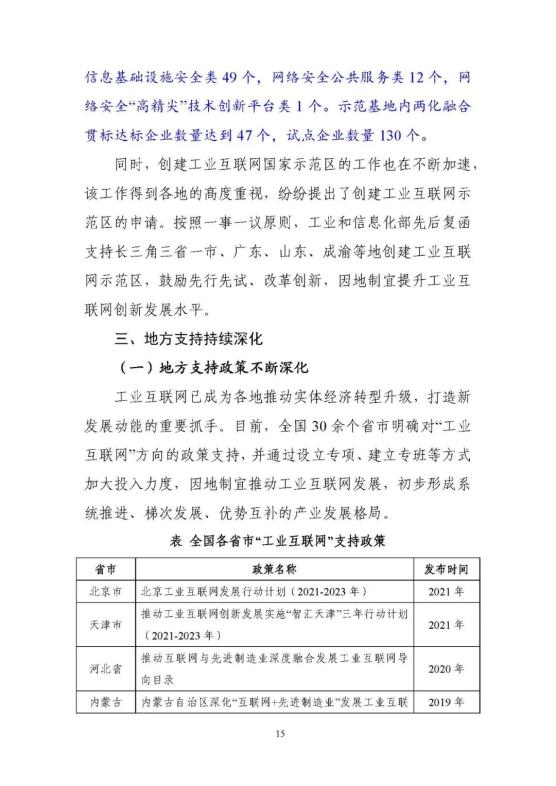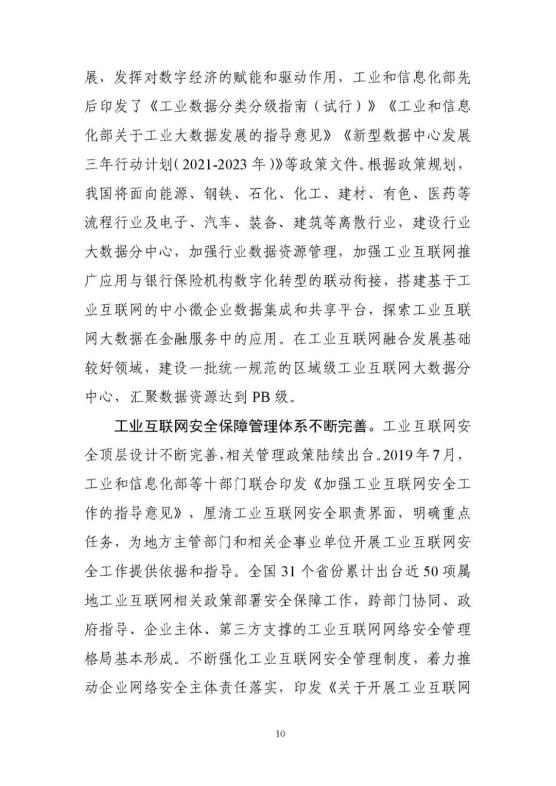從上到下,政策環(huán)境持續(xù)優(yōu)化。2017年《關(guān)于深化“互聯(lián)網(wǎng)﹢先進制造業(yè)”發(fā)展工業(yè)互聯(lián)網(wǎng)的指導意見》正式發(fā)布,在工業(yè)互聯(lián)網(wǎng)專項工作組的統(tǒng)籌協(xié)調(diào)和大力推動下,實施20182020年工業(yè)互聯(lián)網(wǎng)三年行動計劃。今年年初,工信部又發(fā)布了2021-2023年工業(yè)互聯(lián)網(wǎng)三年行動計劃,聚焦基礎(chǔ)設(shè)施、融合應用、技術(shù)創(chuàng)新、產(chǎn)業(yè)生態(tài)、安全保障五大方面重點任務,部署了11個重點行動和10個重點工程。工信部先后出臺11項政策,針對性推動網(wǎng)絡、平臺、數(shù)據(jù)、安全四大領(lǐng)域重點工作。地方支持力度不斷加大,各具特色的地方政策有效覆蓋全國31個省(區(qū)、市)。實施工業(yè)互聯(lián)網(wǎng)創(chuàng)新發(fā)展工程,帶動總投資近700億元,建設(shè)了一大批公共服務平臺,形成了一大批具有標桿效應的試點示范項目,建設(shè)了多個“5G﹢工業(yè)互聯(lián)網(wǎng)”產(chǎn)業(yè)示范基地。