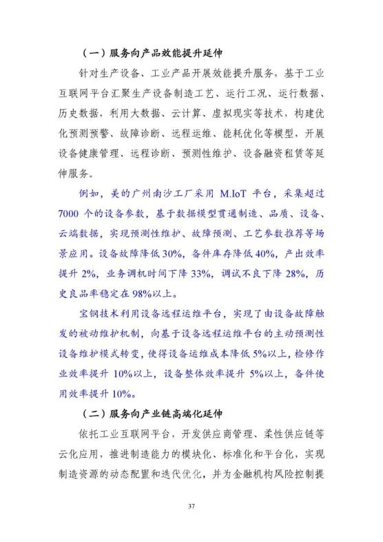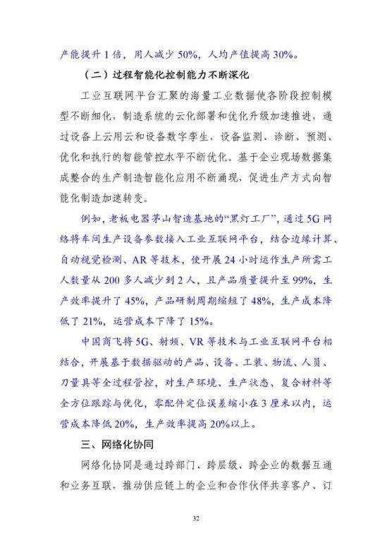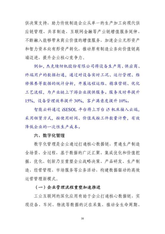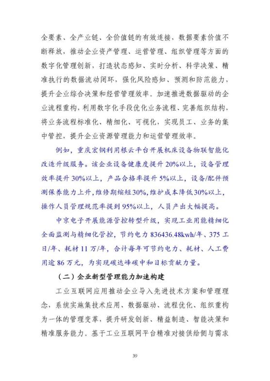 從點到面,融合應用新動能快速壯大。工業(yè)互聯(lián)網(wǎng)的應用從龍頭企業(yè)內(nèi)部拓展到產(chǎn)業(yè)鏈上下游,正在推動形成大中小企業(yè)融通創(chuàng)新的新格局,應用的范圍覆蓋了鋼鐵、機械、電力、交通、能源等40多個國民經(jīng)濟重點行業(yè)。工業(yè)互聯(lián)網(wǎng)應用正在從研產(chǎn)供銷服務各個環(huán)節(jié),向全環(huán)節(jié)、全流程綜合集成應用和多領(lǐng)域系統(tǒng)創(chuàng)新延伸,形成了平臺化設(shè)計、智能化制造、網(wǎng)絡化協(xié)同、個性化定制、數(shù)字化管理等六大典型模式,有效支撐了我國制造業(yè)高端化、智能化、綠色化發(fā)展。