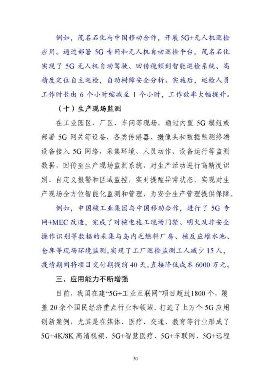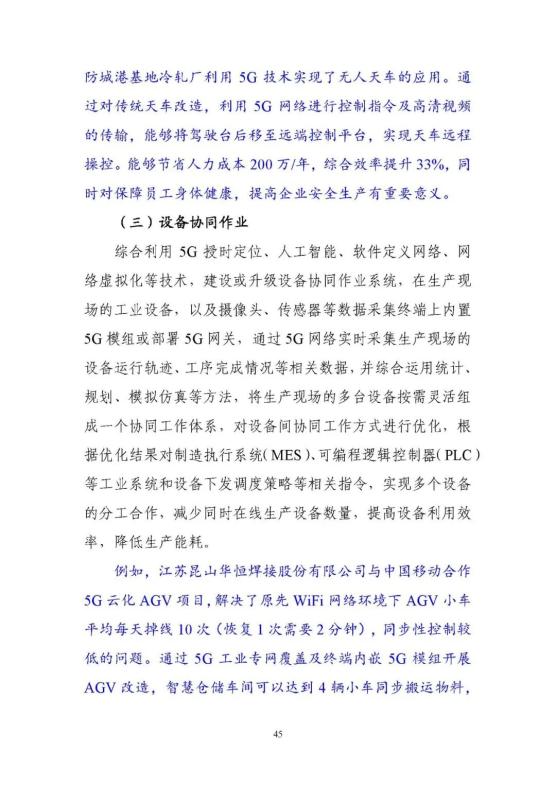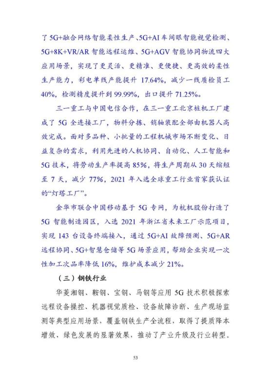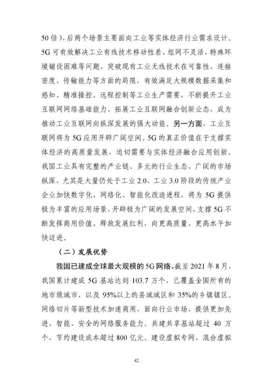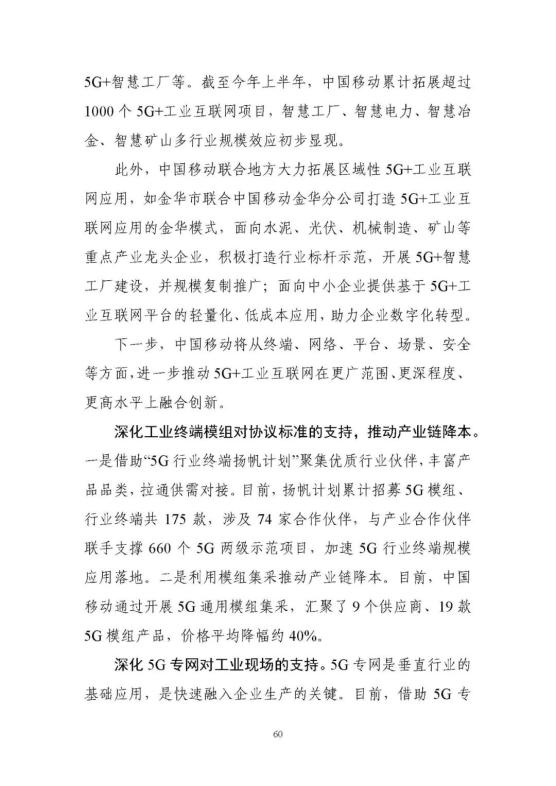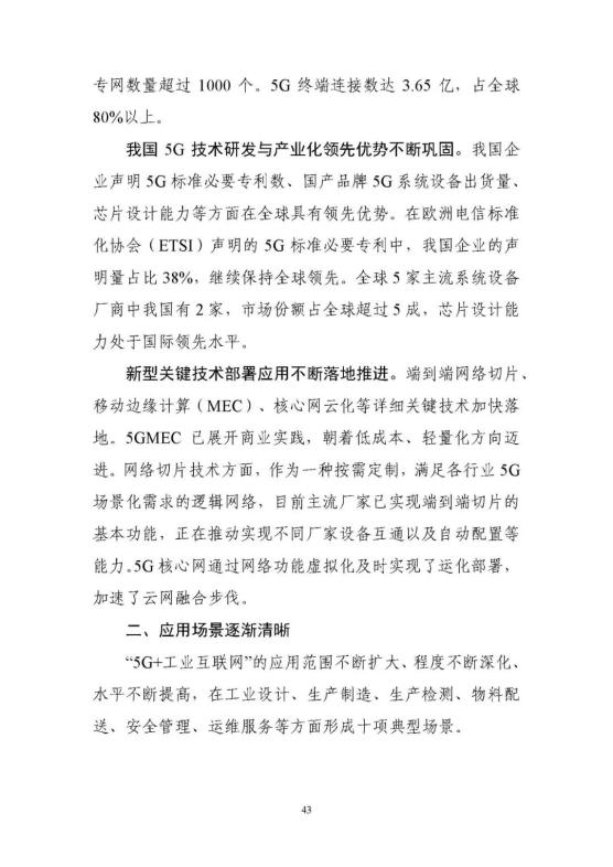 從外到內(nèi),5G賦能構(gòu)筑全球領(lǐng)先優(yōu)勢。依托我國全球最大規(guī)模的5G網(wǎng)絡,充分發(fā)揮基礎(chǔ)電信企業(yè)、工業(yè)企業(yè)、設(shè)備企業(yè)、軟件企業(yè)的協(xié)同優(yōu)勢,構(gòu)建了人、機、物、系統(tǒng)的全面連接,全國5G﹢工業(yè)互聯(lián)網(wǎng)在建項目已經(jīng)超過1800個,率先在電子制造、裝備制造、鋼鐵、采礦、電力五大行業(yè)開展應用示范。依托獨立組網(wǎng)、5G切片等新技術(shù),推動5G由外網(wǎng)公網(wǎng)向工業(yè)網(wǎng)絡下沉。目前5G工業(yè)模組已經(jīng)下探至千元以下,千萬級工業(yè)模組已經(jīng)接近400元,低成本促使銷量正在快速增長,有效推動了應用范圍不斷延伸。同時,推動在銷售、物流等外部環(huán)節(jié)應用向研發(fā)、控制、檢測等生產(chǎn)制造內(nèi)部環(huán)節(jié)延伸,形成了協(xié)同研發(fā)設(shè)計、柔性生產(chǎn)制造、無人智能巡檢等十大應用場景。