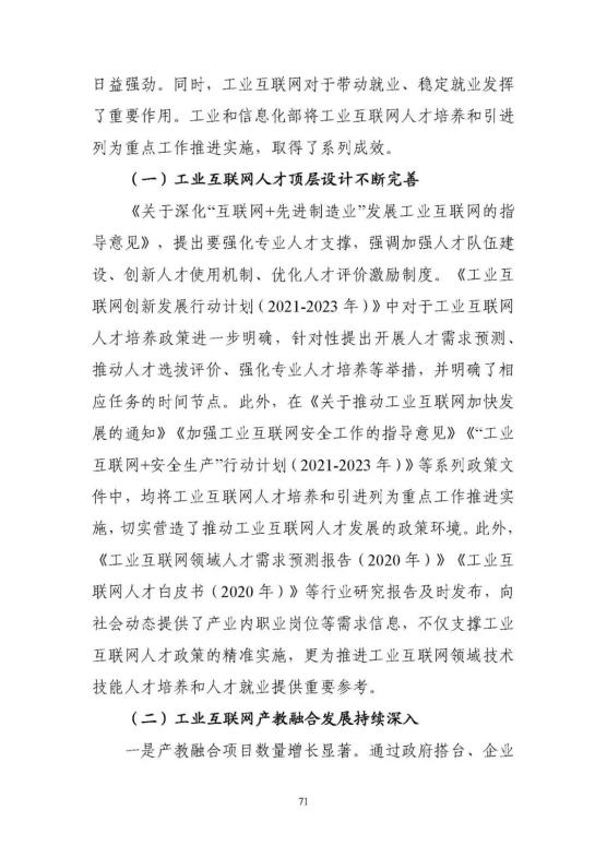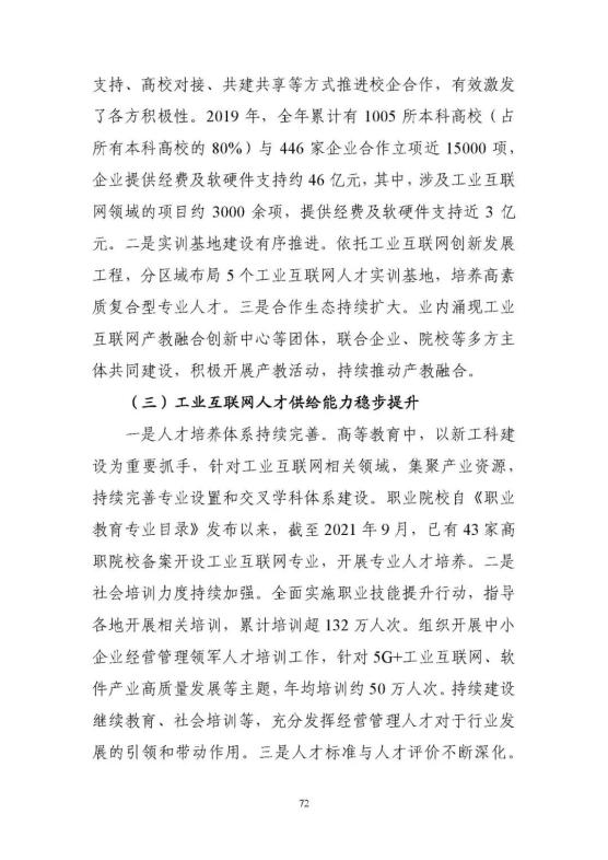 從小到大,產(chǎn)業(yè)新生態(tài)蓬勃發(fā)展。工業(yè)互聯(lián)網(wǎng)產(chǎn)業(yè)規(guī)模和參與的主體快速壯大,工業(yè)數(shù)字化裝備、工業(yè)自動化、工業(yè)網(wǎng)絡、平臺、安全、數(shù)據(jù)等軟件相關(guān)的核心企業(yè)規(guī)模年均增速超過20%,工業(yè)互聯(lián)網(wǎng)相關(guān)領(lǐng)域的技術(shù)研究、標準研制和產(chǎn)業(yè)化基本與國際同步,已經(jīng)發(fā)布國家標準60項,預計到2025年達到100項以上。人才體系扎實構(gòu)建,全國43家高職院校備案開設(shè)工業(yè)互聯(lián)網(wǎng)專業(yè),工業(yè)互聯(lián)網(wǎng)人才實訓基地在全國快速布局。
