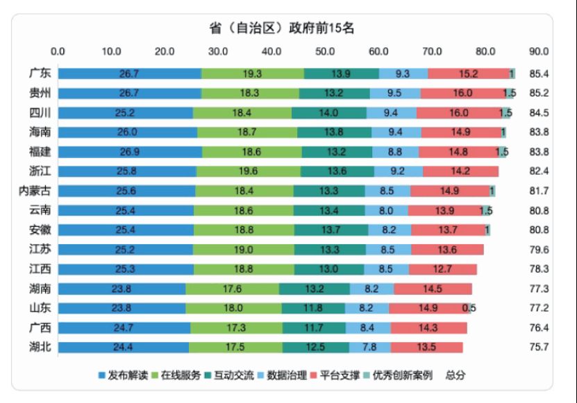 評估結(jié)果顯示,商務(wù)部、國家稅務(wù)總局、市場監(jiān)督管理總局等15家部委網(wǎng)站,廣東、貴州、四川等15家省(自治區(qū))政府網(wǎng)站,北京、上海、重慶等3家直轄市政府網(wǎng)站,深圳、青島、廈門等3家計(jì)劃單列市政府網(wǎng)站,廣州、濟(jì)南、西安等10家省會城市政府網(wǎng)站,佛山、無錫、郴州等30個(gè)地市政府網(wǎng)站和30個(gè)區(qū)縣政府網(wǎng)站表現(xiàn)突出,進(jìn)入領(lǐng)先政府網(wǎng)站序列。