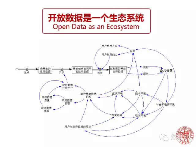 總體來(lái)說(shuō),開放數(shù)據(jù)到產(chǎn)生價(jià)值是一個(gè)非常復(fù)雜的動(dòng)態(tài)的過(guò)程,涉及到各種利益相關(guān)方,有各種因果關(guān)系和利益關(guān)系,要使整個(gè)循環(huán)成為一個(gè)正循環(huán),而不是成為一個(gè)堵塞的循環(huán),就要讓這件事產(chǎn)生效果,讓政府更愿意開放。產(chǎn)生更好的效果了,也就更愿意開放,開發(fā)者也會(huì)更積極得來(lái)利用數(shù)據(jù)。