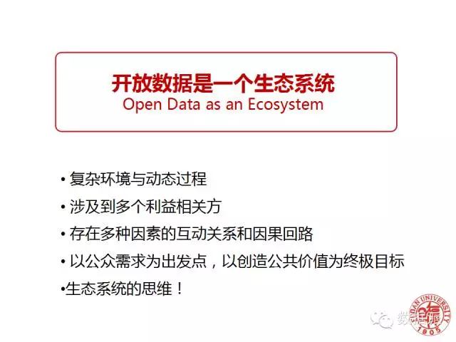 政府要有一個(gè)生態(tài)系統(tǒng)的思維。開放數(shù)據(jù)不是甲乙方外包關(guān)系、購(gòu)買服務(wù)的關(guān)系,政府要做的工作是培育圍繞開放數(shù)據(jù)的生態(tài)系統(tǒng)。