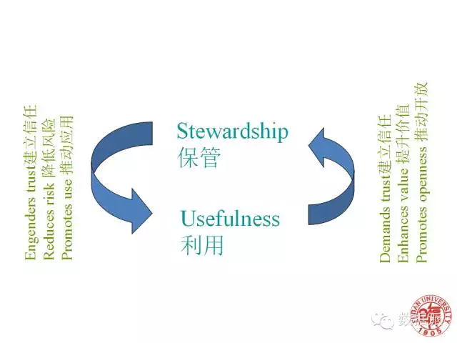 最后呼應(yīng)一下早上張楠老師講的觀點(diǎn),安全和數(shù)據(jù)開放不是一對(duì)矛盾,他們是一個(gè)相輔相成的過(guò)程。信息政策里有一個(gè)理論框架:第一個(gè)原則是保管的原則,把數(shù)據(jù)的安全和質(zhì)量問(wèn)題解決好;第二個(gè)原則是利用的原則,不僅要把數(shù)據(jù)管好,更要把數(shù)據(jù)充分利用起來(lái),產(chǎn)生價(jià)值。兩個(gè)原則互為補(bǔ)充,只有管好了數(shù)據(jù),才能產(chǎn)生信任、降低風(fēng)險(xiǎn),有利于更好地利用數(shù)據(jù),反過(guò)來(lái),數(shù)據(jù)利用得越好,創(chuàng)造的價(jià)值越大,政府就對(duì)你越信任,也更愿意推動(dòng)利用。安全有保障,才會(huì)更愿意開放,利用得越好,政府也更愿意花力氣去提升數(shù)據(jù)質(zhì)量、保證安全。如果安全出了風(fēng)險(xiǎn),利用就進(jìn)行不下去了,數(shù)據(jù)不利用了,管理數(shù)據(jù)也就沒有價(jià)值了。這就好比圖書館的工作不僅是為了管理書,管理的目的是為了讓書被更好得利用,發(fā)揮它的價(jià)值。而只有管好書,才能更好地把書借出去,書借出去了,還要能管得好,收得回來(lái),這兩個(gè)是相輔相成的關(guān)系。開放和安全也是這樣的關(guān)系。
